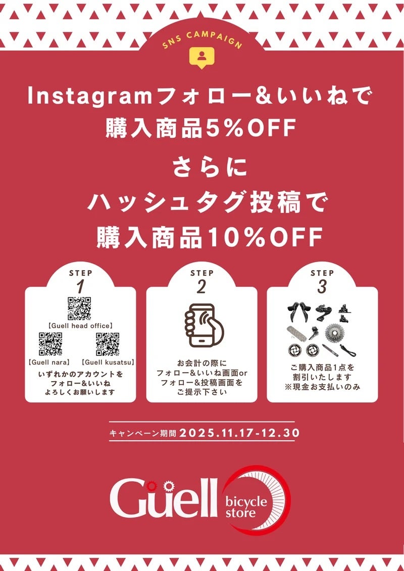 返信は【info@guell-bicycle.jp】からとなります。携帯電話からのお問合せの際はメールフィルターの受信許可設定を予めお願い致します。